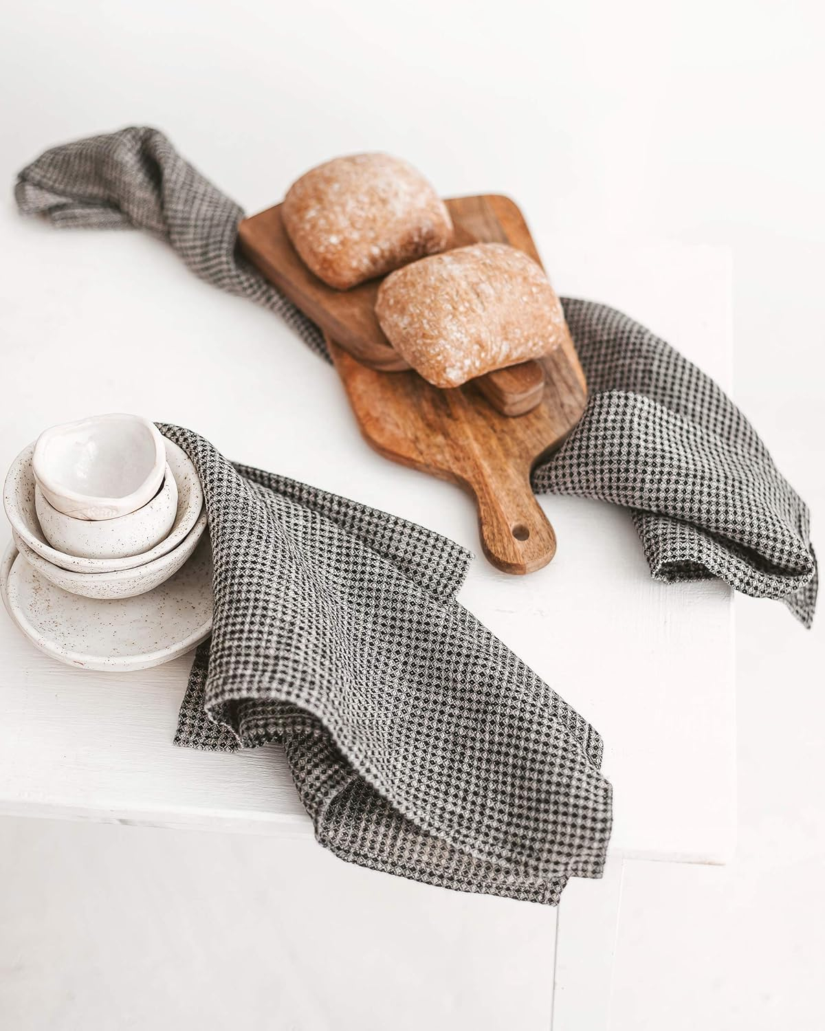 Natural 100% Linen Flax Kitchen Towels – Set of 2 – Flour Sack Towels – Softened Stone-washed Waffle Weave Hand Towels – Compact and Light-weight Dish Cloths Perfect for Travel